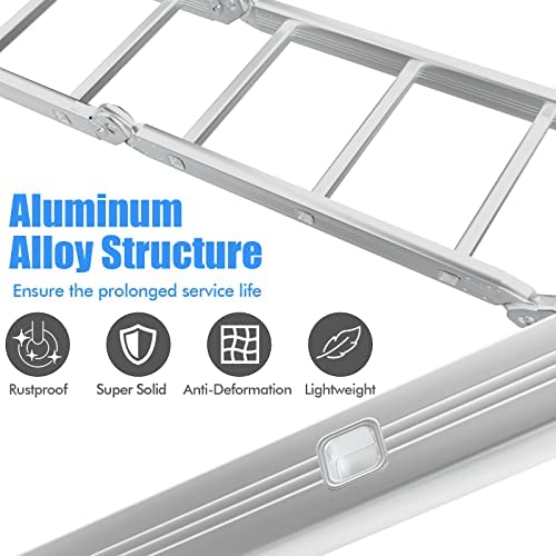 [Robust Aluminum Alloy Frame]: Featuring heavy-duty aluminum alloy structure, this multi-purpose step ladder is rustproof, super solid and anti-deformation. Giantex aluminium ladder with stable structure can load up to 330 lbs. And the high-quality material enables it to accompany you for a long time.