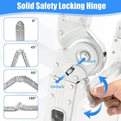 [Convenient Adjustment]: Giantex aluminum ladder adopts large joints with locking device between each section, which can be adjusted from 0°to 45°, 90°or 180°. Therefore, you can change the configuration of the ladder with more convenience.