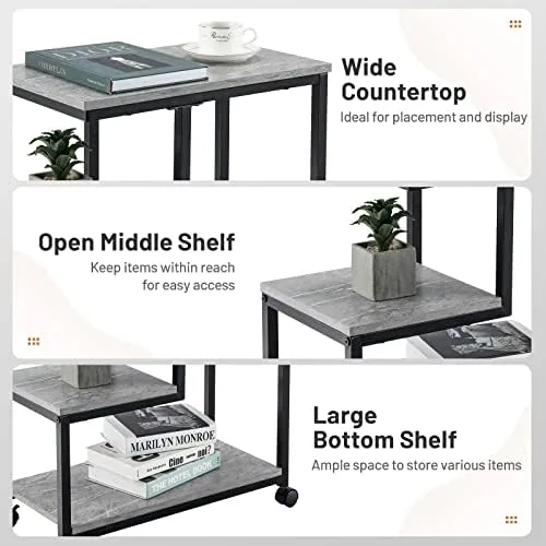 Our side table on wheels is a marvel of attraction and durability to bring your home to the next level. This end table is designed to be appealingly simplistic but for multiple occasions. You can put it in the living room as a sofa side table or place near the bed as a night stand. Wherever it stands, it makes your room tidy and your life simple. Its 3-tier design offers plenty of storage space yet it also features a compact size to fits narrow places as well. With sturdy and durable construction, the table is built for long-lasting use. You can move it from room to room effortlessly due to its portable wheels. You should have such a marvelous addition for your home!
