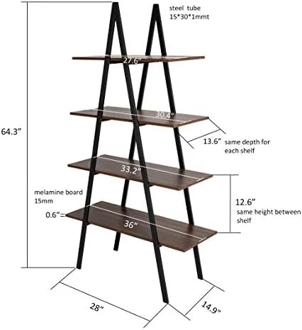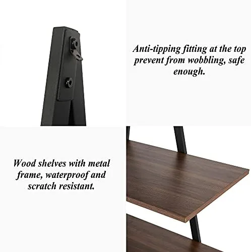 【Perfect Size & Large Capacity】The overall dimensions of the supplies shelf are: 36.02″ L × 14.96″ W × 64.57″ H. Distance between shelves is 12.6″. Our display rack can hold up to 505.07 lbs and each tier board can hold more than 100lbs. Anti-tipping device fittings at the top and A-frame sturdy metal frame strengthens the whole stability, and make sure the book shelf stays stable on uneven floor or rug. You can place anything you want to display or storage.