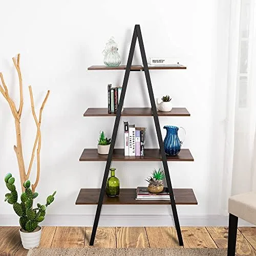 【Industrial A Shaped Bookshelf】The modern ladder bookcase features A-frame and ladder-like shelves, provides spacious storage space. Unique A-shape design makes this bookshelf a work of art. The minimalist style design combines aesthetic and function, fits your home office or living room, makes it an eye-catching piece in your room. As it is damp proof and scratch-resistant, it is suitable for any space — living room, study room, bedroom, hallway, kitchen, bathroom, hallway and office.