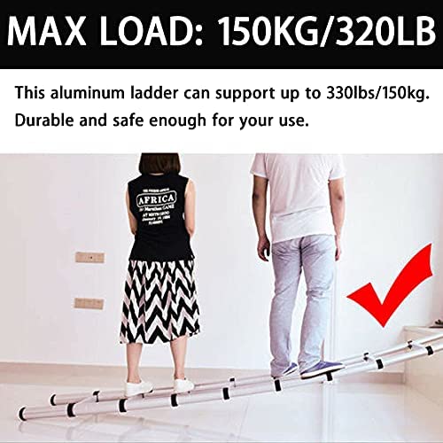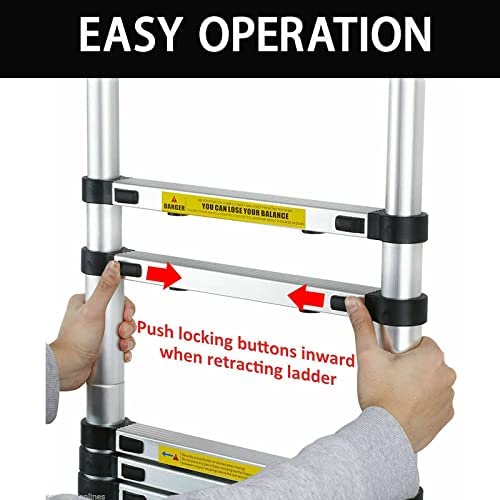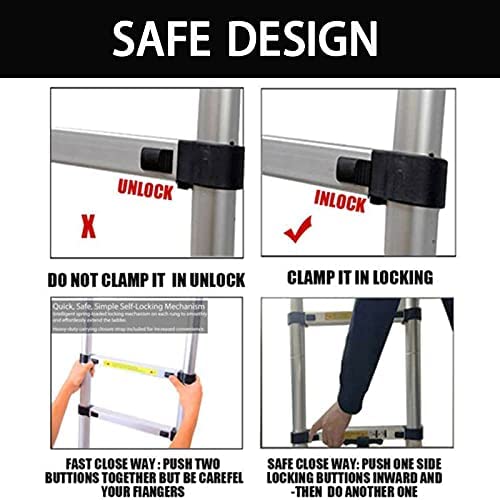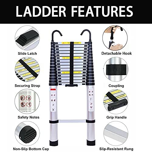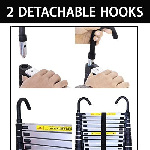 NEWEST 6.2M 20.3FT Aluminium Telescopic Extension Ladder with 2 Detachable Hooks! Specifications:Approx. Size: Folded Height-109cm/3.5ft; Unfolded Height-6.2m/20.3ft.Number of Ladder Step: 15Step Interval: 40cm/1.3ftWidth: 48cm/1.6ftNet Weight: 16.3kg / 36lbMax. Load: 150kg/330lb.Hook Length: 10cm/0.32ft.Material: High quality aluminum alloy. x The hook of the telescope ladder can be hung on a pipe with a diameter of less than 7cm/0.23ft. Features:This is a 6.2m .. How to use: 1.For extension, just pull a section up, hear the inchclickinch sound, confirm both left/right locks are in place. 2.For retraction, it’s a one-hand process, unlock one step and step, it will retract, do not put your hand in the step spacing, when it retracts and may clip your hand. Package included: 1 x 20.3FT Aluminium Extension Ladder 2 x Detachable Hooks 1 x Instruction Manual