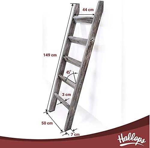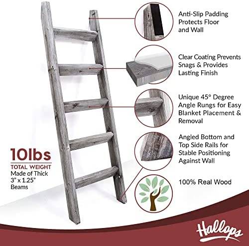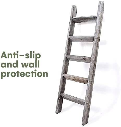 Hallops Blanket Ladder 5 ft | Premium Wood Rustic Ladder Shelf | Ladder Shelf for Quilt | Rustic Farmhouse Decor | Vintange Wooden Ladder Shelf (Thick, Gray White)