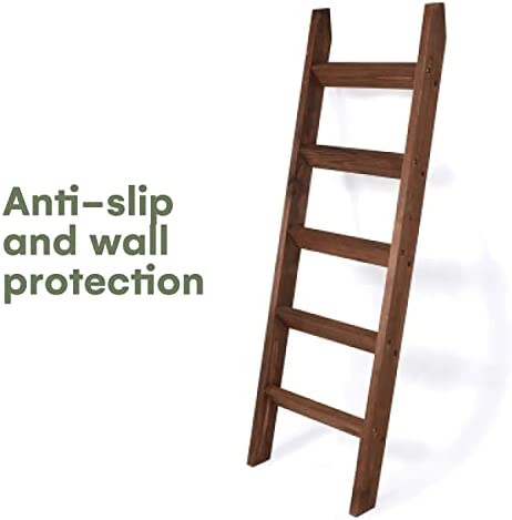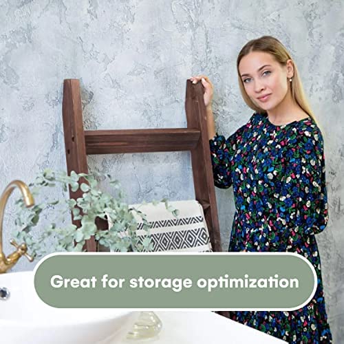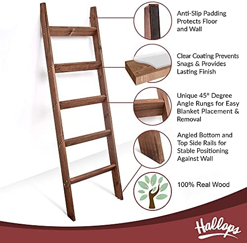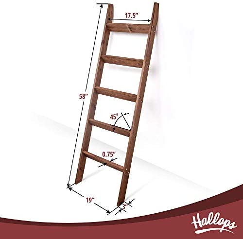 Hallops Blanket Ladder 5 ft | Premium Wood Rustic Ladder Shelf | Ladder Shelf for Quilt | Rustic Farmhouse Decor | Vintange Wooden Ladder Shelf (Thin, Brown)
