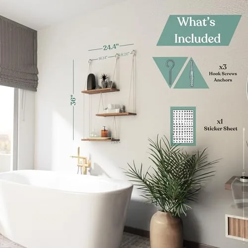 🔤 Customizable Sticker – Our long hanging shelf for wall is the perfect way to add a unique, personalized touch to your hanging wood shelves. The sheet repeats all the letters in the alphabet 4 times. Create your maxim, name your hanging wooden shelves, or just decorate with 104 letters. Possibilities are endless. Explore our hanging shelves for wall and wall shelves for bedroom decor aesthetic.