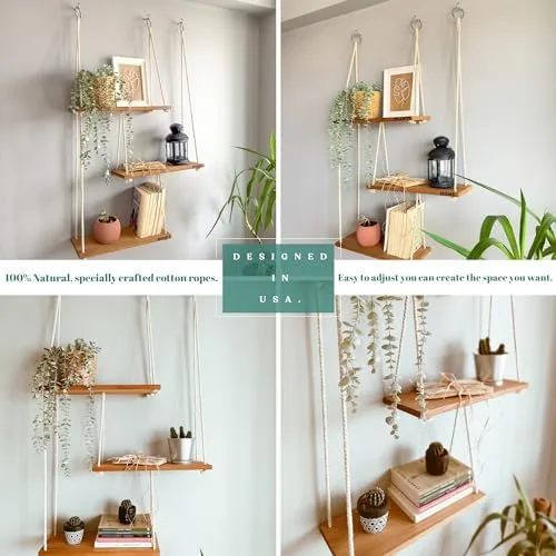 🌱 Hanging Wall Shelves for Bedroom – Our boho hanging shelf for wall, window hanging plant shelf indoor, rope shelf for wall bathroom shelves, floating shelves for wall and hanging wall shelves for living room decor. Our brown floating plant shelves is perfect for bedrooms, while our hanging storage shelves provide convenient storage. Add a touch of nature with our hanging plant shelves. For nurseries, nursery shelves for wall decor.