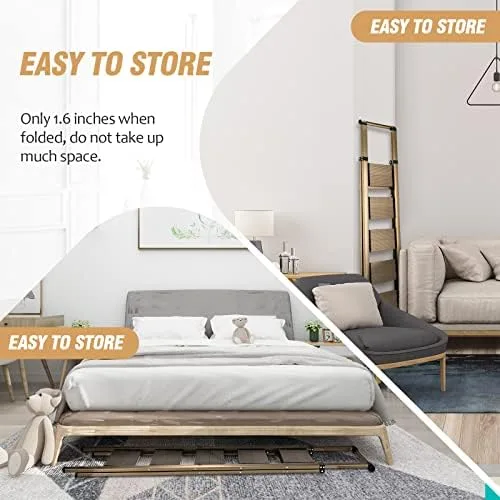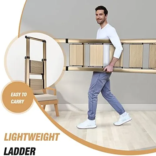 Space-saving size: 17.7″L X 37.7″W X 63.4″H when opened. 17.7”L X 1.7″W X 68.4″H when folded. Net weight only 16.5 lbs.You can place it in the washroom, narrow spacing, or behind a closet with ease. And foldable design also makes the ladder easy to carry.