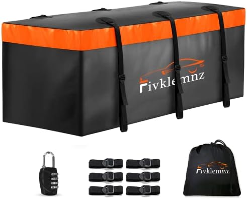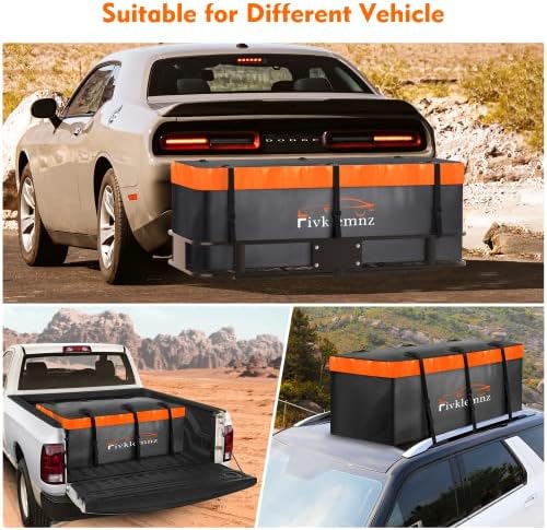🚙【Large Storage Space】: Fivklemnz cargo carrier bag was designed to solve the problem of limited storage space in the car. 20 cubic feet cargo carrier bag allows you to hold 6-8 suitcases, travel luggage case, tents, sleeping bags and more. Free up inside vehicle space for more comfortable on the way.