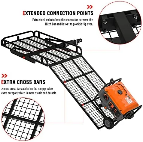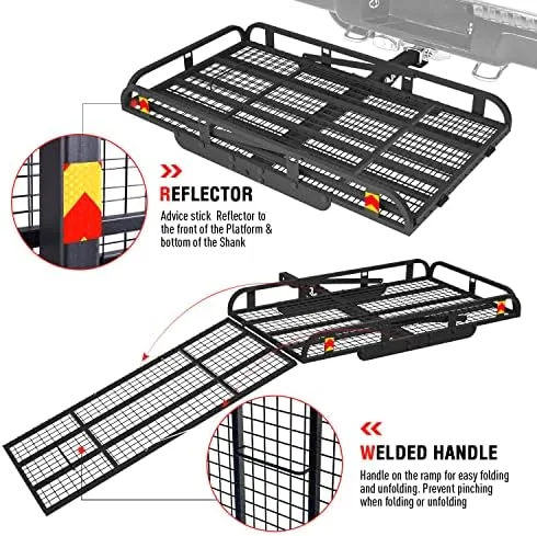 Hitch Mount Steel Cargo Carrier Basket with 49'' Folding Wheelchair Ramp, Fits 2'' Trailer Mounted Hitches
