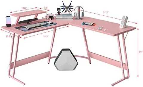 Homall L Shaped Gaming Desk Computer Corner Desk PC Gaming Desk Table with Large Monitor Riser Stand for Home Office Sturdy Writing Workstation (Pink, 51 Inch)