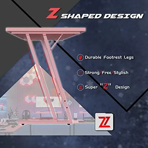 Super Gaming Style: The amazing carbon fiber material covers the desk, even including the bottom baffle, which makes the whole table full of fabulous gloss and delicate touch. Plus the detail dark red pattern mezzanine and unique z shaped chair legs. Bring you the double enjoyment of vision and touch.