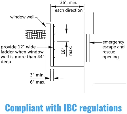 400LBS Load Capacity: The egress ladder has a robust construction with a 0.24″ thickness of the plate, which can withstand a capacity of 400lbs. It is available for people of different sizes. Its strong and stable structure make them easily to climb up and down. And our ladder compliant with IBC Standard: The needed distance from the wall is 5.4″. The must-have egress window escape ladder is designed for use in all types of basement window wells with a depth of 4′ to 5′.
