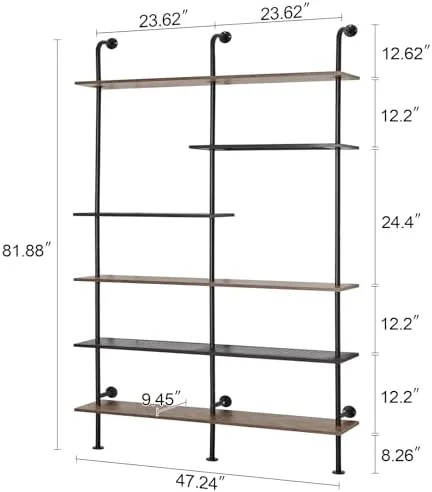 【Great Storage Function】The biggest advantage of using a bookcase with a plumbing structure is that it saves space, and the new wall-mounted design makes the product itself look less bulky and wasteful of space. The dimensions of this product are 47.24(W)X9.45(D)X81.88(H)INCH