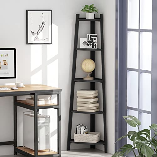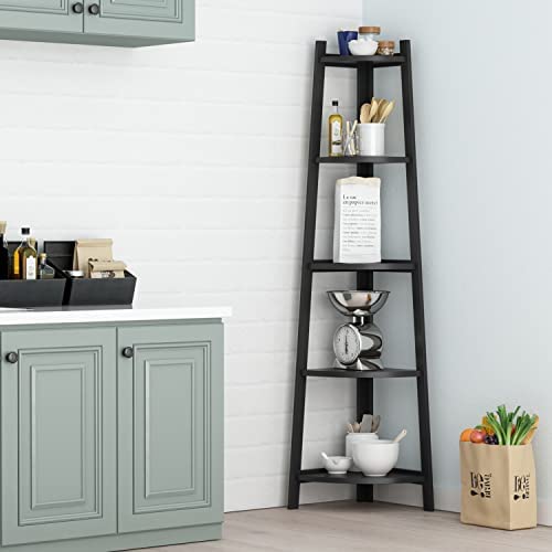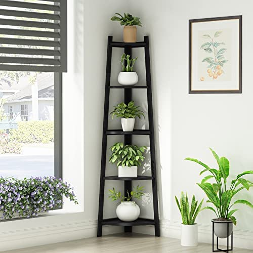 [Stylish Corner Shelf Stand]: The 5-tier ladder corner shelf is minimalist style, the black color and ladder shape are combined to create modern charm. It will matches well with your home decor and other furniture
