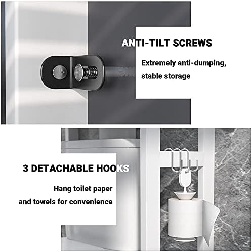 STABLE CONSTRUCTION – 2 sets of anti-tilt kits for concerning security, protect the toilet storage shelf from waggle and topple over. Adjustable bottom bar for toilets of different heights.