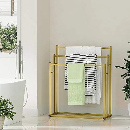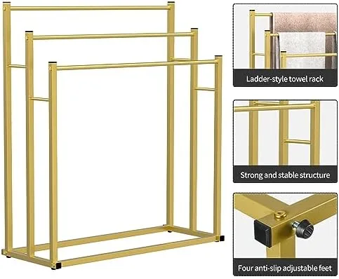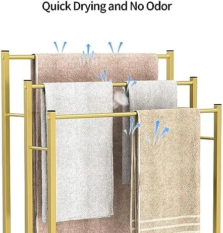【3 Tier Free Standing】: The freestanding towel rack is designed with 3 sturdy stepped towel bars providing ample space to hang and dry your towels and clothes. Its open-air construction allows for optimal air circulation, ensuring quick and efficient drying. It features good ventilation and is perfect for drying multiple towels at once.