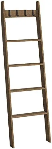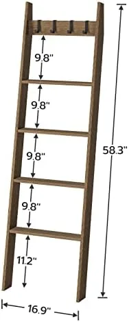 HOOBRO Blanket Ladder, Wall Leaning Blanket Rack, 5 Ft, 5 Tier Farmhouse Ladder Shelf, Towel Rack, Decorative Quilt Rack, Removable Hooks, Living Room, Bedroom, Bathroom, Mocha BR51CJ01
