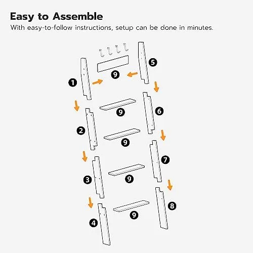 Sturdy and User-Friendly Blanket Ladder: With clear structure and tight connection of parts, this lightweight blanket ladder can bear up to 55 lb. The anti-tip kit on the top and non-slip pads at the bottom make the blanket rack stand firmly against the wall without falling and scratching, practical and durable