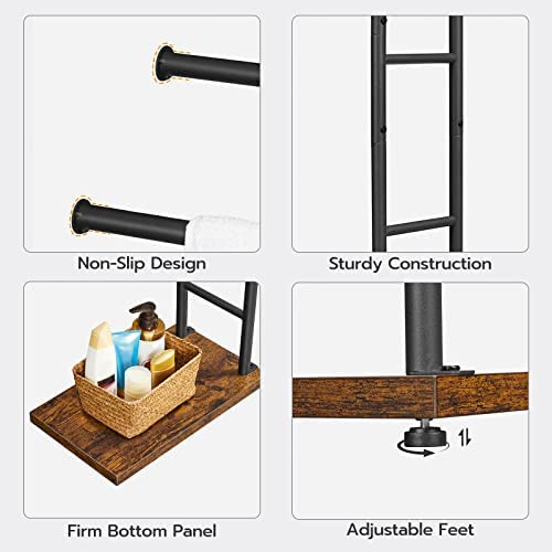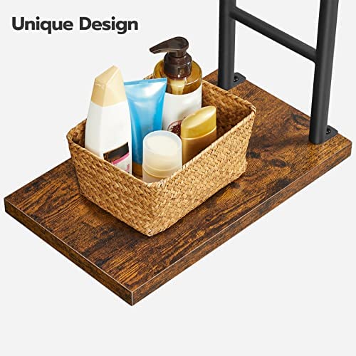 HOOBRO Freestanding Towel Rack, 18.1" L x 10.9" W x 36.6" H Towel Holder with Shelf, Blanket Ladder Rack, Decorative Rack, Bathroom, Laundry Room, Bedroom, Rustic Brown and Black BF24LB01G1