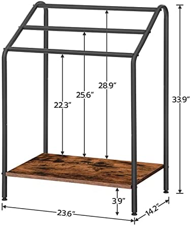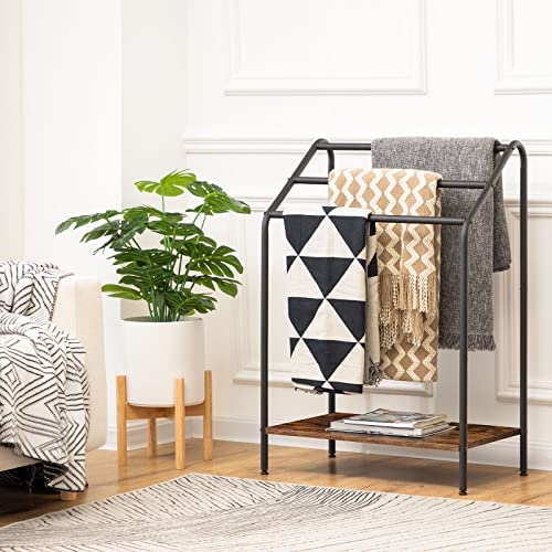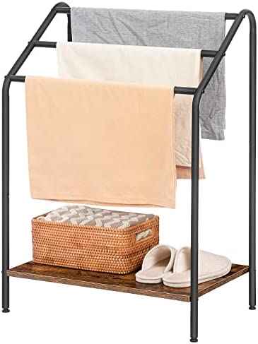HOOBRO Freestanding Towel-Rack, 3 Tier Blanket Rack for Living Room, 23.6" L x 14.2" W x 33.9" H, Quilt Blanket Ladder Holder, Drying and Display Rack, Bathroom, Rustic Brown and Black BF63LB01