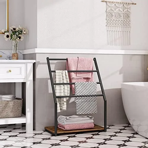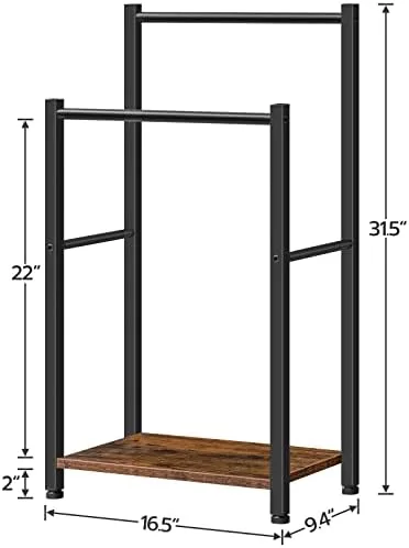 Classic Style: This industrial towel hanger is made of the black metal frame and rustic brown particleboard, simple and versatile, adding a modern flavor to your bathroom or bedroom. It blends the unique look and storage function to facilitate your daily life, complementing your current home decorations