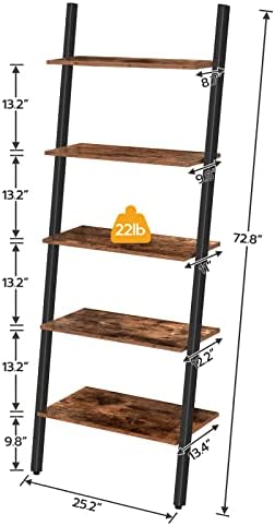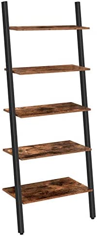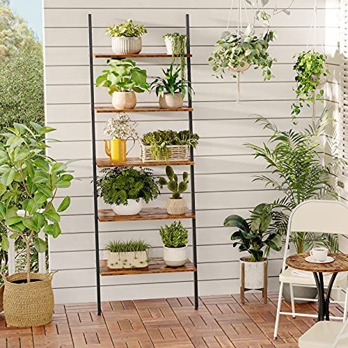 HOOBRO Ladder Shelf, 5-Tier Leaning Bookshelf, Industrial Storage Rack Shelves, Leaning-Against-Wall, for Living Room Office Kitchen, Metal Frame, Rustic Brown BF70CJ01
