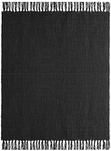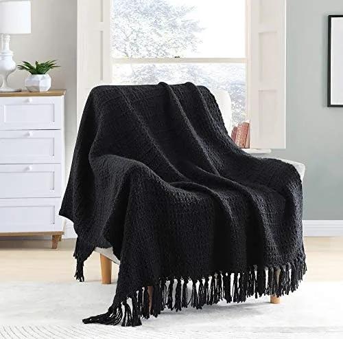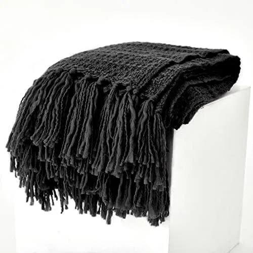 HORIMOTE HOME Black Chunky Knit Oversized Throw Blanket for Couch, Bed, and Sofa with Boho Chic Style, Textured Basket Weave Pattern, Decorative Fringe, Oversized 60"x80"