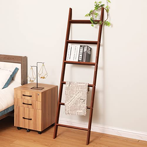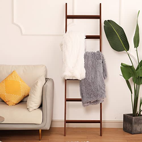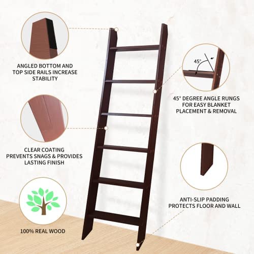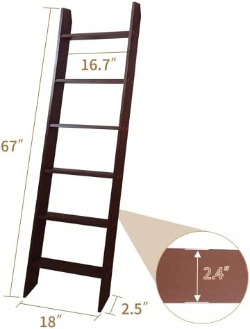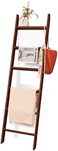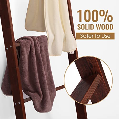 HYBDAMAI Blanket Ladder, 6-Tier Wooden Quilt Stand, Decorative Ladder Shelf, Leaning Shelf, Wall Leaning Blanket Ladder Towel Storage Rack for Living Room Bathroom, Bedroom, Bathroom (Brown)