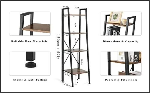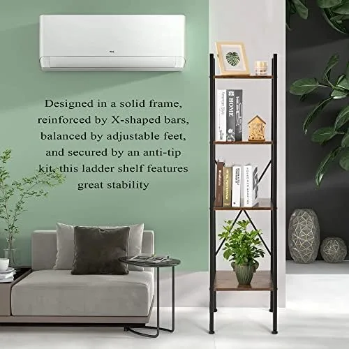 {Stable Design & Safe}The 4-tier ladder shelf combines the charm of classic and modern furniture. An excellent bookshelf is a combination of decoration and function.