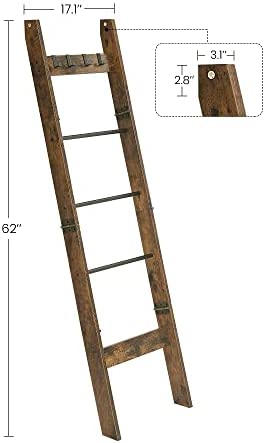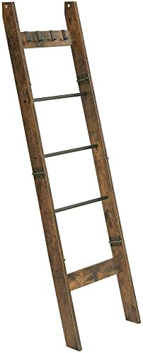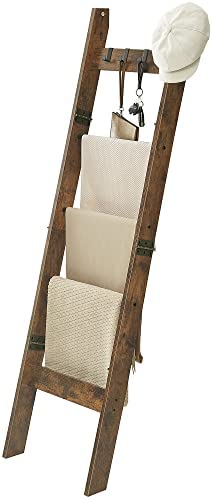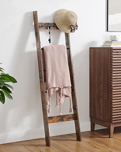 Hzuaneri Blanket Ladder – for Bedroom, Decorative Wood Quilt Rack with 4 Removable Hooks, 5-Tier Farmhouse Ladder Holder Organizer for Bathroom Living Room, Rustic Brown and Black