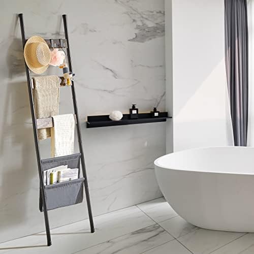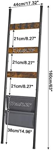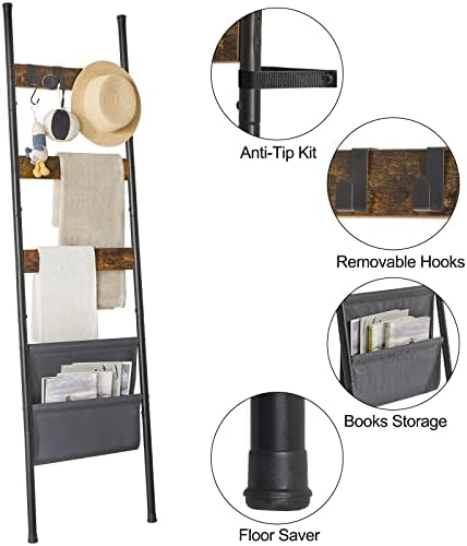 IBUYKE Blanket Rack Towel Rack Holder with Hooks Blanket Ladders Wall Leaning Metal Holder Rack for Living Room,Bathroom,Bedroom Home Decor Rustic Brown TTR001H