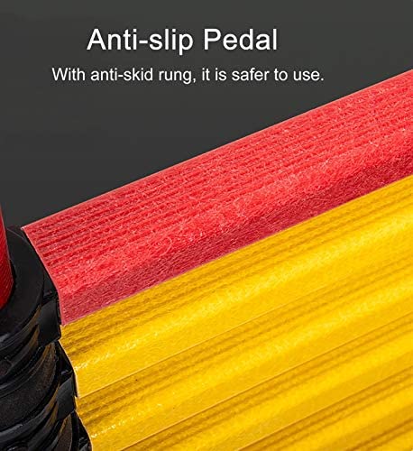 【Safe to Use】: Extends and locks using the thumb buttons for steps that won’t slip down while in use. While latches on the support poles enable the rungs to be fixed in place for stable support.