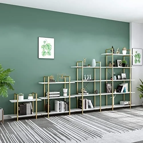 EXCELLENT SUITABLE MATERIALS – High-grade metal frame use nano-level piano paint collocation with marble grain shelf and X-shaped support part on the back make the bookshelf stable and durable;