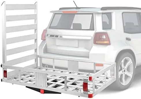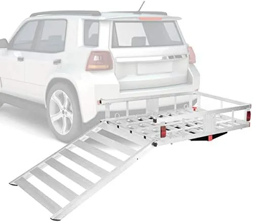 Our cargo carrier with ramp features a strong aluminum construction that guarantees durability and stability, as well as rust resistance. What’s more, it’s lightweight and easy to be mounted. This hitch mounted and basket style cargo carrier with a ramp can carry up to 500 pounds, allowing you to roll your small wheeled equipment quickly and easily. And the high side rails help keep the cargo in place and provide multiple tie-down points. It is ideal for transporting electric wheelchairs, scooters, garden equipment and other small wheeled equipment, making it a great choice for travel.