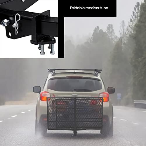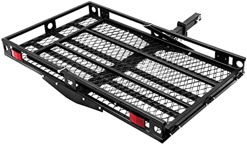 🚗 Convenient Foldable Design: This hitch mount cargo carrier is equipped with a folding handle. The folding function allows the cargo carrier to be folded up when not in use and also for easy storage. Moreover, the cargo carrier fits any car, SUV, van or truck with a 2’’ receiver.