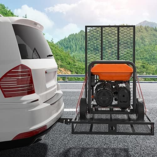 🚗 Ensure Safe Use: The hitch cargo carrier with ramp comes with an anti-tilt device to provide safety and reduce shaking while driving. And two red reflective strips are installed on the carrier to remind vehicles behind to keep a safe distance. In addition, the vehicle basket is equipped with 2 tie down straps to provide additional protection for the cargo and wheeled equipment.