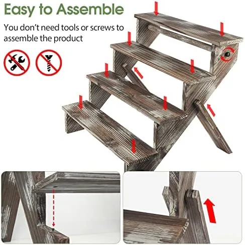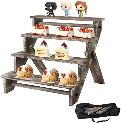 J JACKCUBE DESIGN Rustic Wood Display Stand, 4 Tier Cupcake Stand Stair Shelf, Portable Display Riser, Included Bag for Storage, Decorative Dessert Stand – MK578A