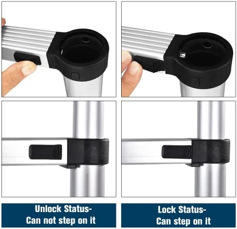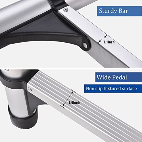 Widened Pedal & Anti-slip: the pedal width 1.6 inches, safe and stable, in compliance with skid resistant design standards. Top caps and angled feet, easy to secure the ladder to wall and floor. which can protect your safety during use and effectively control accidents caused by slippery feet.