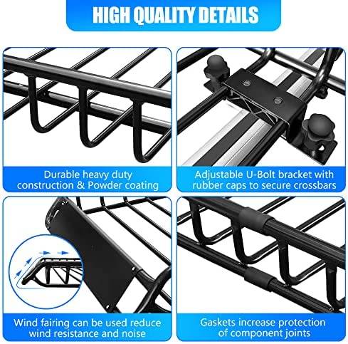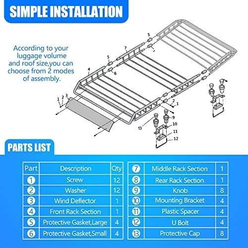 EASY ASSEMBLY & ADJUSTABLE: The car roof rack can be disassembled into 3 sections, easy to assemble and install on your vehicles cross bars and side rails, mounting with four universal U-shaped steel plate.