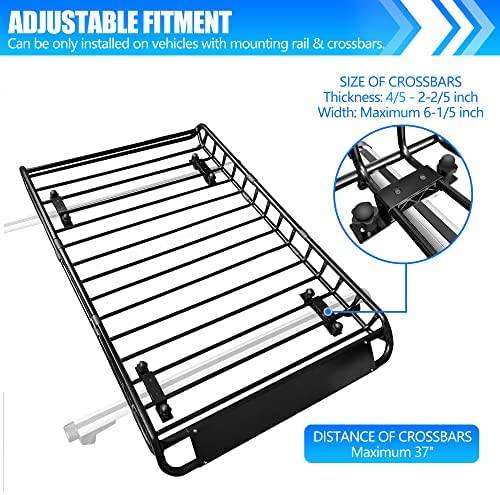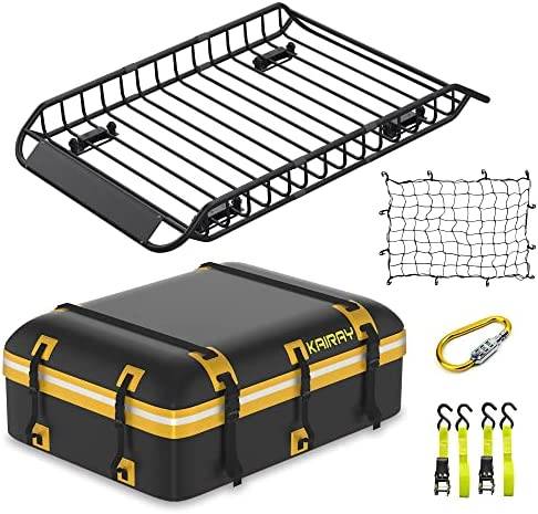 KAIRAY Roof Rack Cargo Basket 58"(L) x 36"(W) x 5.1"(H) Extendable Universal Rooftop Luggage Carrier for Truck Cars SUV with Waterproof Cargo Bag, Cargo Net, Ratchet Straps & Outdoor Combination Lock