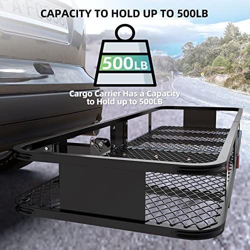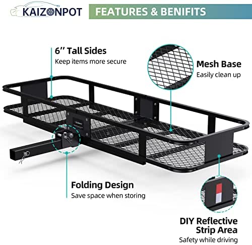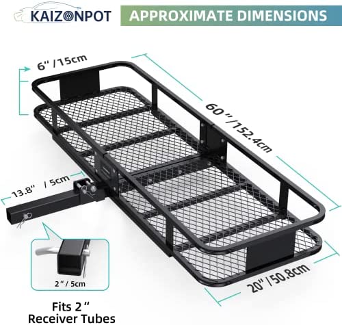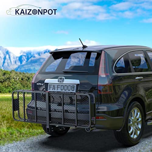 KAIZONPOT 60 X 20 X 6 Inches Hitch Rack Cargo Carrier 500lb Capacity Hitch Mount Folding Cargo Basket Cargo Racks for Trailer Hitch Cargo Trailer