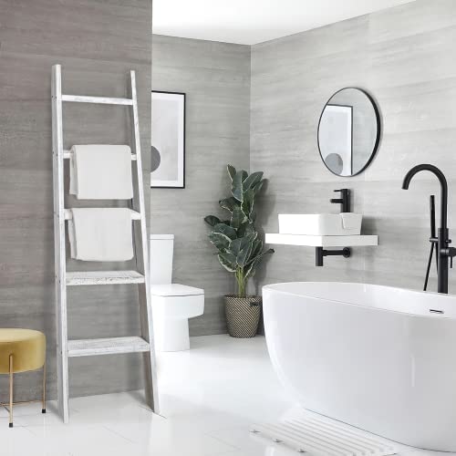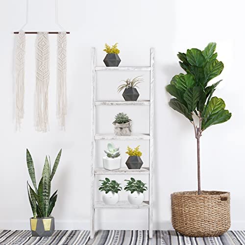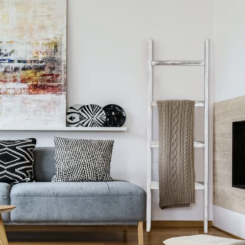 KIAYACI Ladder Shelf Rustic Vintage Blanket Ladder Decorative Wood Ladder Shelf for Living Room Bedroom Bathroom (Retro White, 63" x 22")