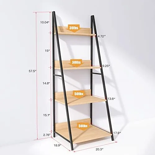 Space-Saving Solution: With its compact design, this ladder shelf maximizes vertical space while minimizing floor footprint. It offers multiple tiers of shelving, allowing you to optimize storage and showcase your items elegantly.