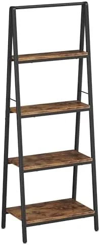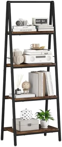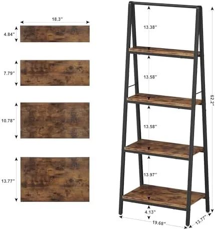 [Versatile ladder shelf bookcase]-This industrial ladder shelf can be used not only a home office bookshelf,bathroom ladder shelf,but also a plant shelf,kitchen storage rack or any other occasions for storage to keep your room orderly and tidy without occupying too much space.Suitable for all home decoration styles.Maximum load capacity from top to bottom: 40 lbs, 40 lbs, 60 lbs, 60 lbs.Product Size: 16.6″D x 20.5″W x 51.3″H.