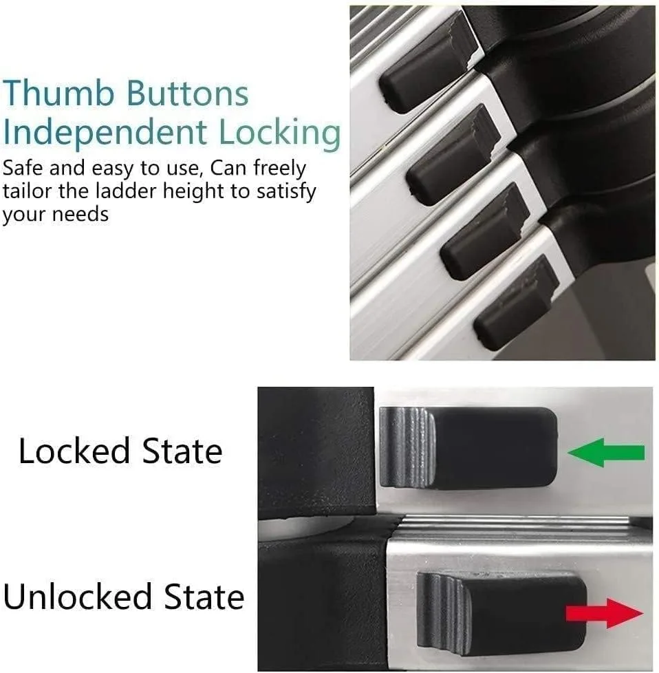 Premium Materials : Telescoping Extension Ladder is Crafted from Premium Aluminum Alloy.The Surface of Alumiis Oxidized, Which Can Prolong the Life of Folding Ladder.And Its Plastic Parts is Reinforced with Nylon Fibre to Improves Load Capacity, Stability, Aging Resistance and Extends Service Life.