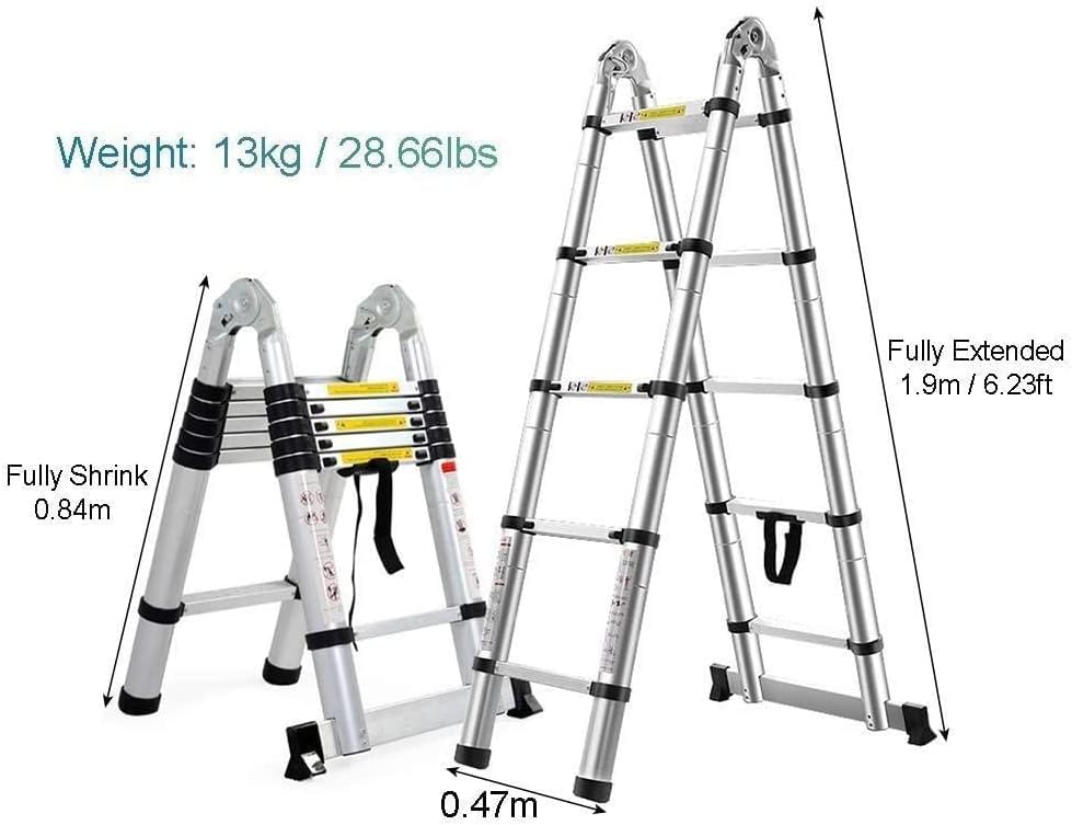 Easy to Transport and Store, Durable. Great for Home/Building Maintenance, Washing Window, Exterior/Interior Decorating, Painting Etc. Telesextension Loft Ladder Fully Extended High: 5.25Ft/3.2M1.6M+1.6M, 6.23Ft/3.8M1.9M+1.9M, 7.22Ft/4.4M2.2M+2.2M, 8.20Ft/5M2.5M+2.5M, 9.19Ft/5.6M2.8M+2.8M, 10.17Ft/6.2M3.1M+3.1M