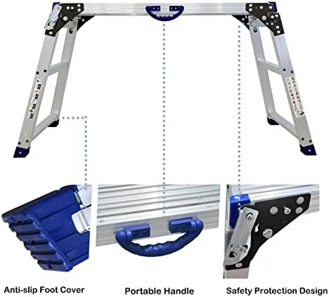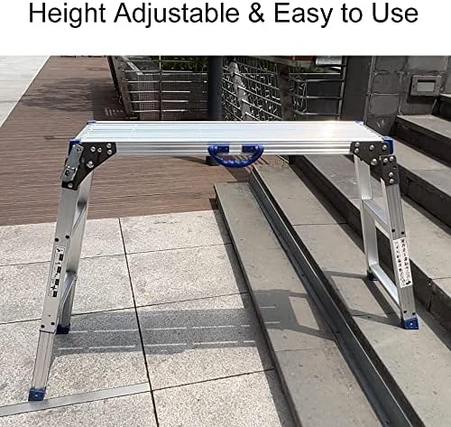 【Durable Construction】This carpenter platform is constructed with high strenghth aluminous which ensures the safety. Large load capacity of 330lbs, saving space while folded. provide slip-resistance and protect floor from damage, safe on concrete, wood, asphalt, or bare ground.