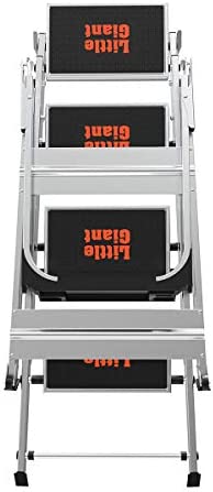 Safety handrail increases stability while working on top step and wide, slip-resistant steps provide extra comfort.