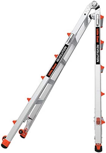 Little Giant Ladders, Revolution with Ratchet Levelers, M22, 22 ft, Multi-Position Ladder, Ratchet™ leg levelers, Aluminum, Type 1A, 300 lbs weight rating (12022-801), Gray