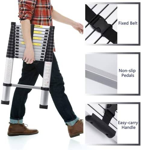 🌞 COMPACT TELESCOPIC LADDER: It’s time to say bye to the giant ladder!!! Our telescopic extension ladder can reach 12.5ft when fully unfolded and only 2.8ft when contracted. It’s only 24 pounds, You can carry it easily with just one hand, and it will not take much space to store. You can easily put it under your bed, closet, or even in your trunk. Easy to store and transport. It’s definitely a perfect portable ladder for household.